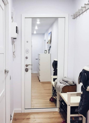 Вариантов отделки тоже достаточно: от лаконичных антивандальных решений до моделей с кованой решеткой, стеклянными вставками и вставкой входная дверь с декоративной панелью. Популярна комбинация напыление МДФ металлическая дверь, когда снаружи используется порошковым напылением снаружи, а внутри — МДФ под винорит, светлый дуб, орех или беленый ясень. Такая наружная и внутренняя отделка позволяет гармонично сочетать входную зону с интерьером, не теряя практичности металла.