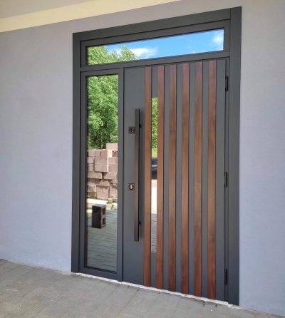 В ассортименте легко найти дверь в частный дом в строгих темных тонах, входная утепленная дверь со светлый оттенком внутри или черная дверь с фактурой шелк. Есть двери с порошковым напылением, которые ориентированы на строгий минимализм, а есть решения, где порошковым напылением отличаются сложные декоративные рисунки и фактуры. Производители с порошковым напылением предлагают линейки под любой стиль: от классики под медь до современного лофта с серого бетона и вставкой из стекла.