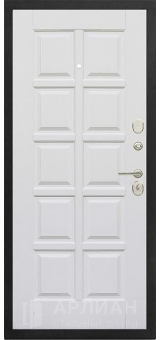 Стальная дверь белого цвета с панелью МДФ и молдингом №96