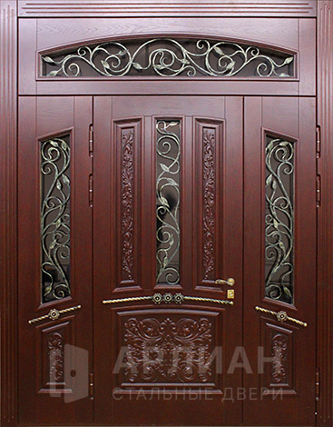 Входная дверь для загородного дома с коваными элементами №115
